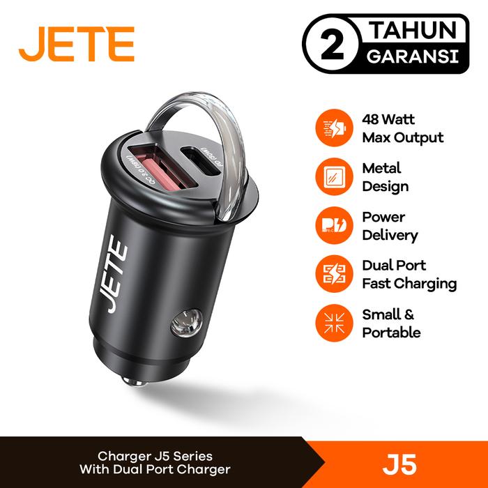 JETE J5 Car Charger Fast Charging 48W Type C PD & QC 3.0 - Garansi Resmi 2 Tahun