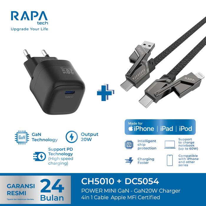 RAPAtech Power Mini GaN PD20W Charger for iPhone 11 12 13 14 Mfi Type C to Lightning Cable