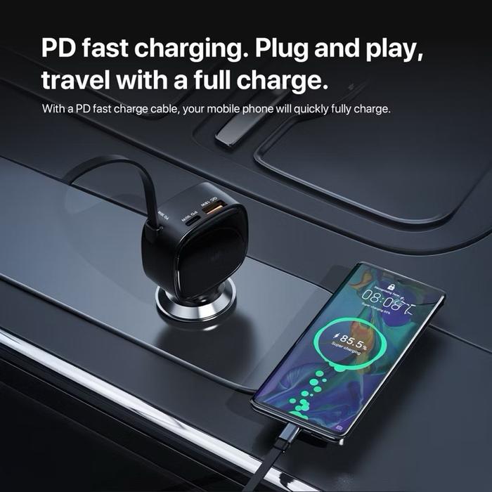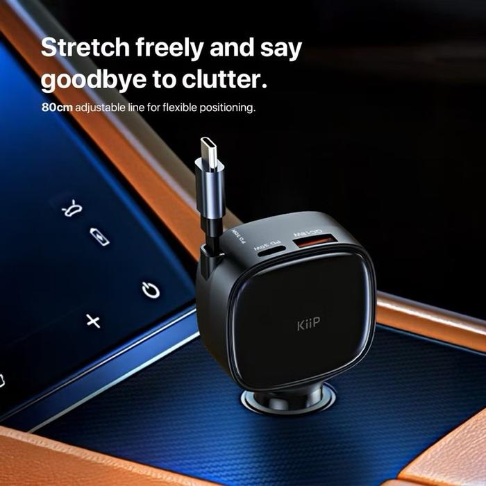 KiiP SC17 84W Car Charger Mobil With Retractable USB-C Cable Fast Charging