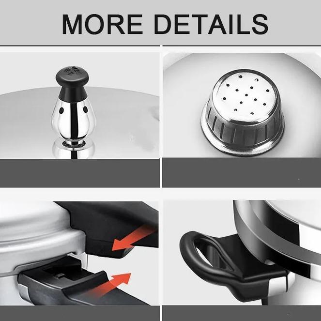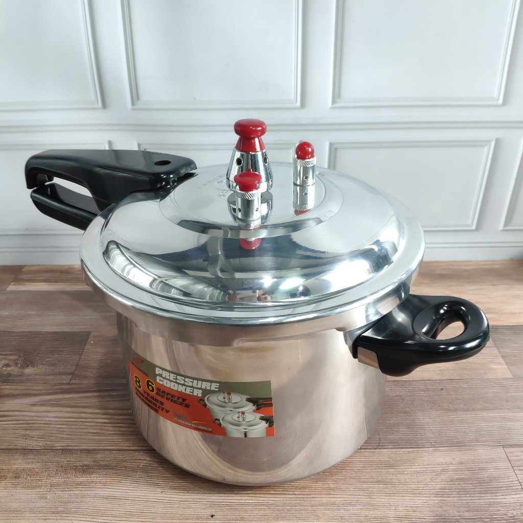 Panci Presto Aluminium 4, 5, 6, 8, 10, 12 Liter Anti Karat, Kunci Keamanan, Hemat Gas