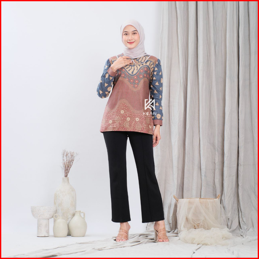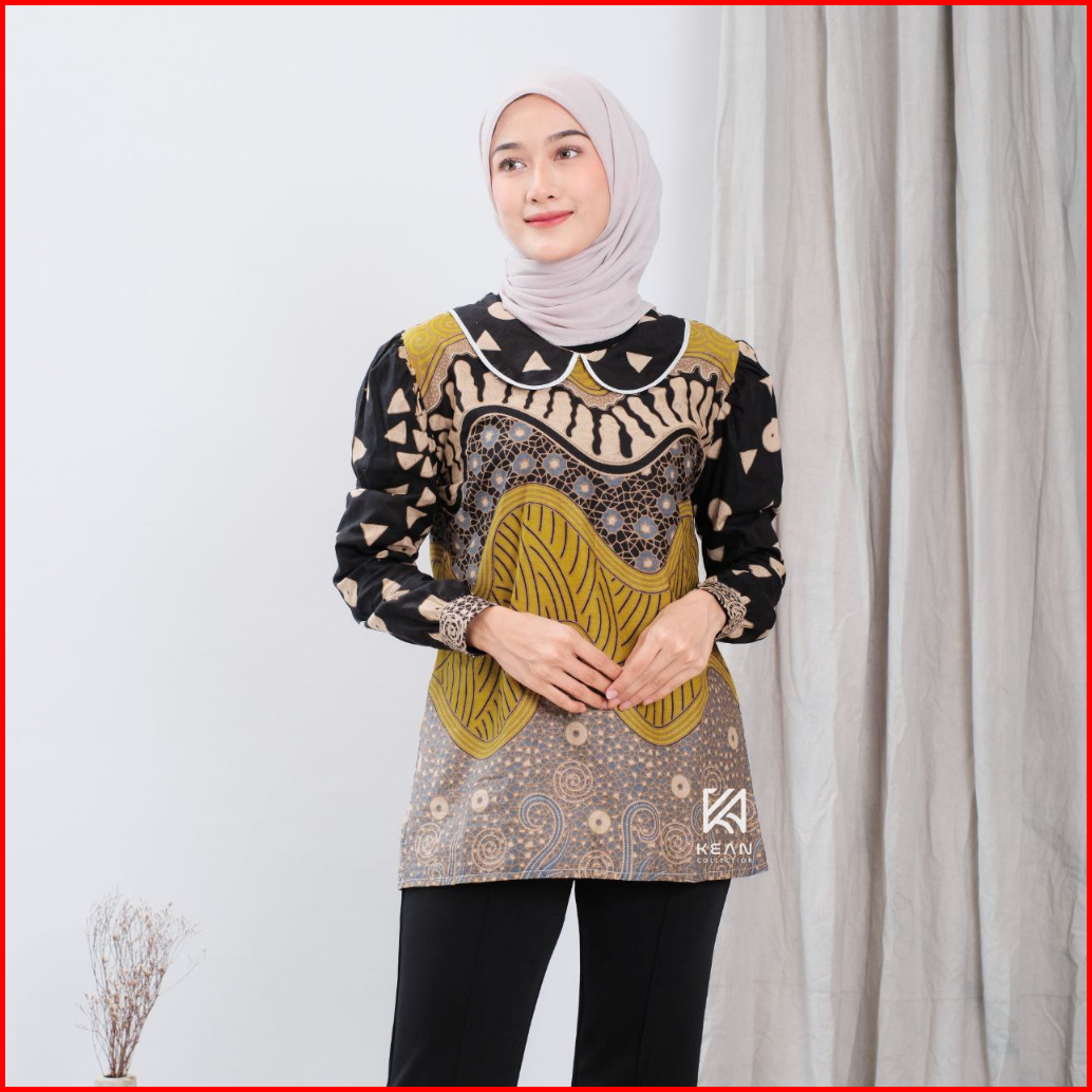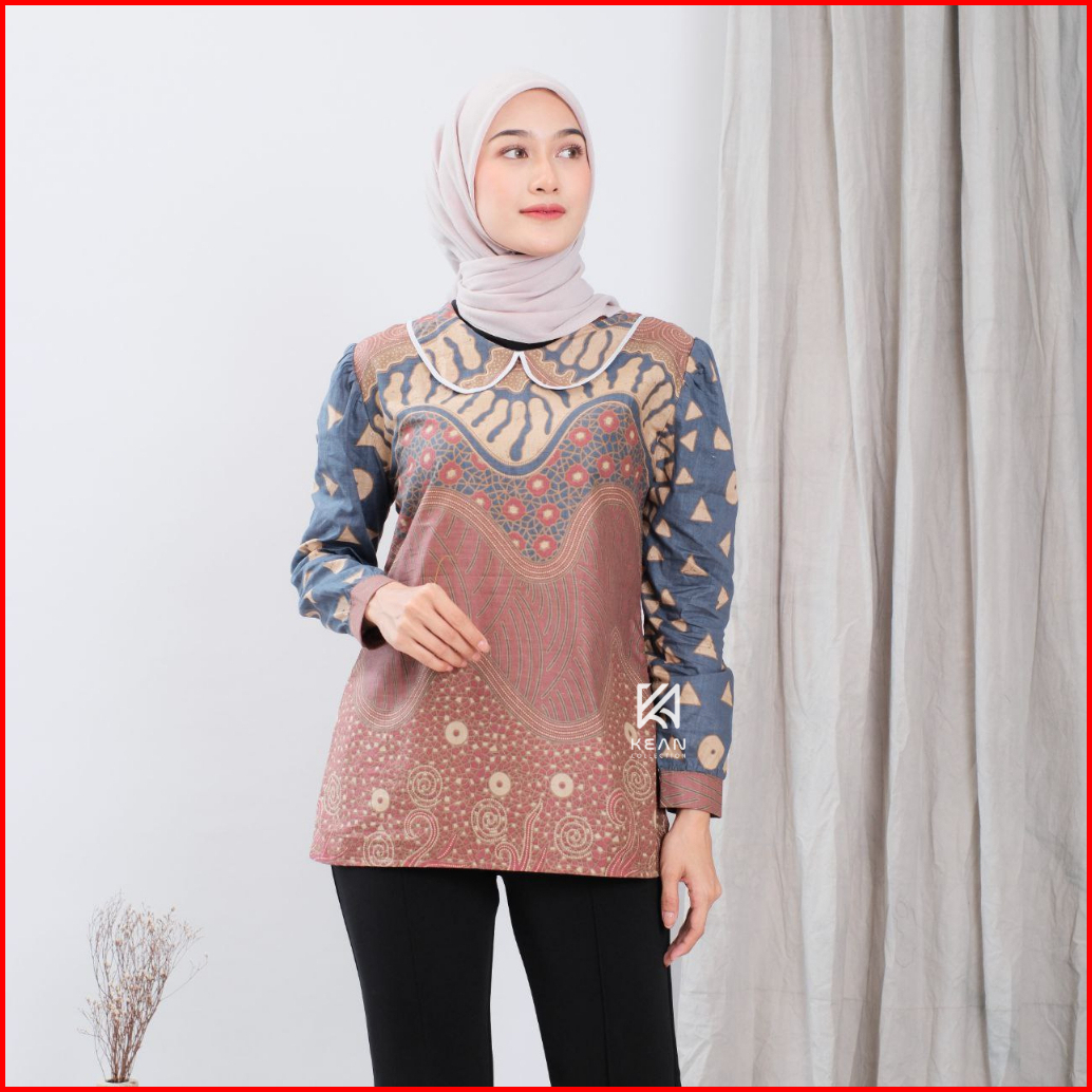 Kean Batik Wanita Modern Kerja Kantor Lengan Panjang Motif Laura Jumputan Solo Kain Katun Premium Baju Atasan Tradisiona