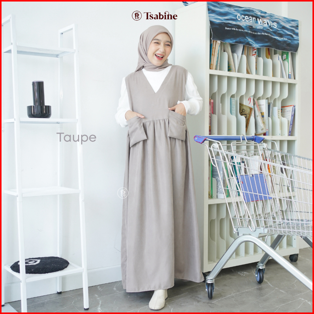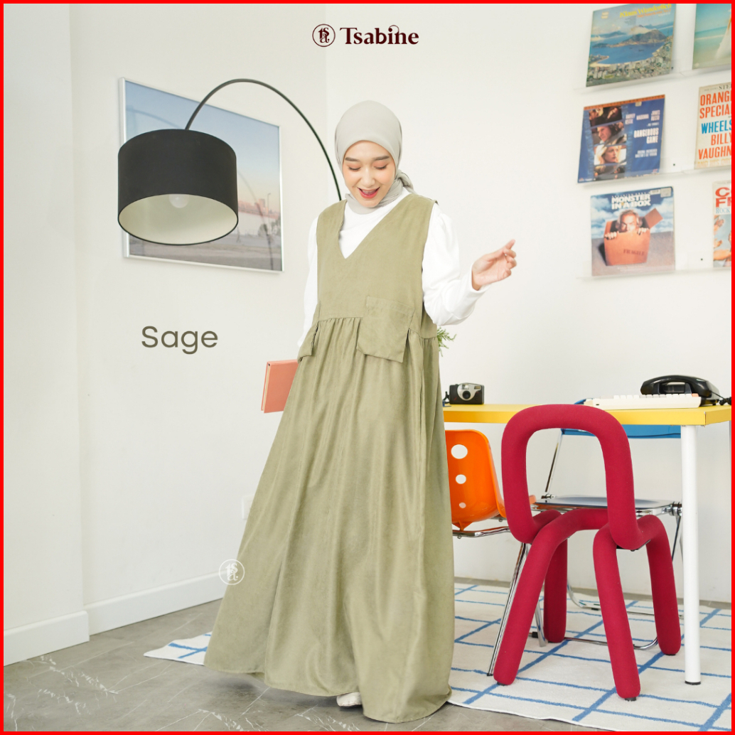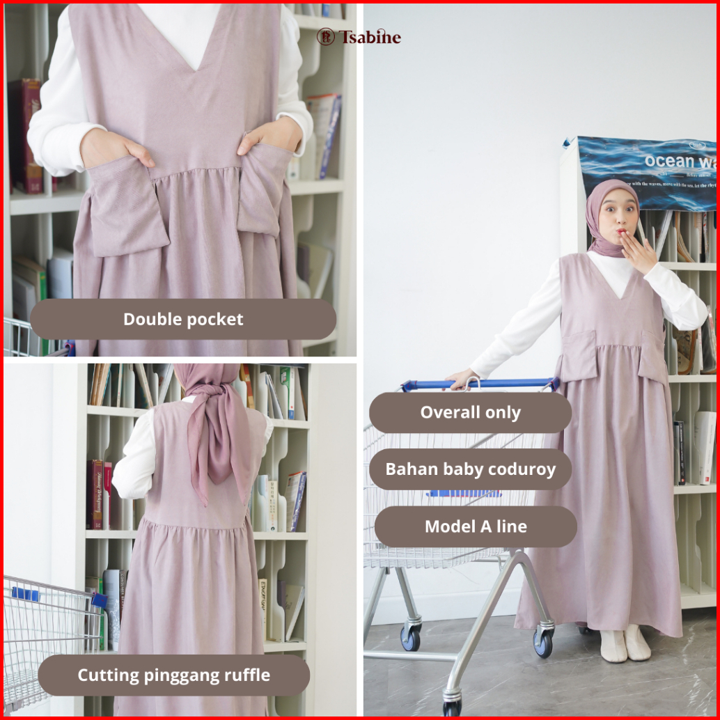 Tsabine - Ruka Overall Dress Gamis Wanita Korean Style Bahan Coduroy Polos Saku Depan Premium