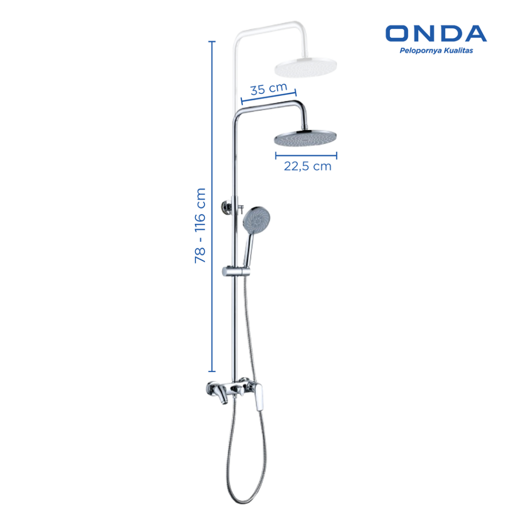 Shower Kamar Mandi Set ONDA Rain 3 in 1 R-FRES Shower Tiang Komplit Kran Panas Dingin Anti Bocor Onda Stainless Terlaris