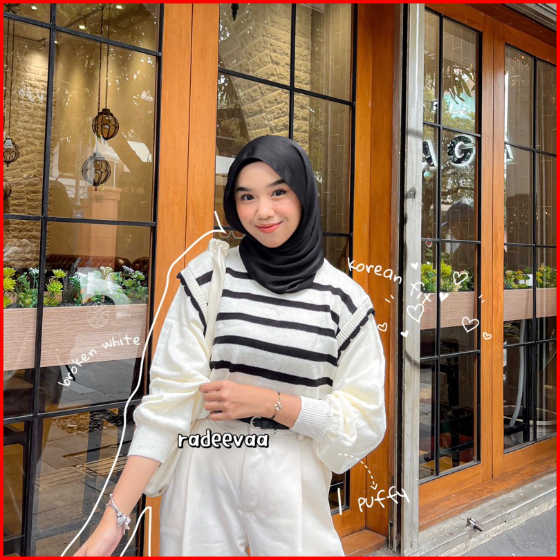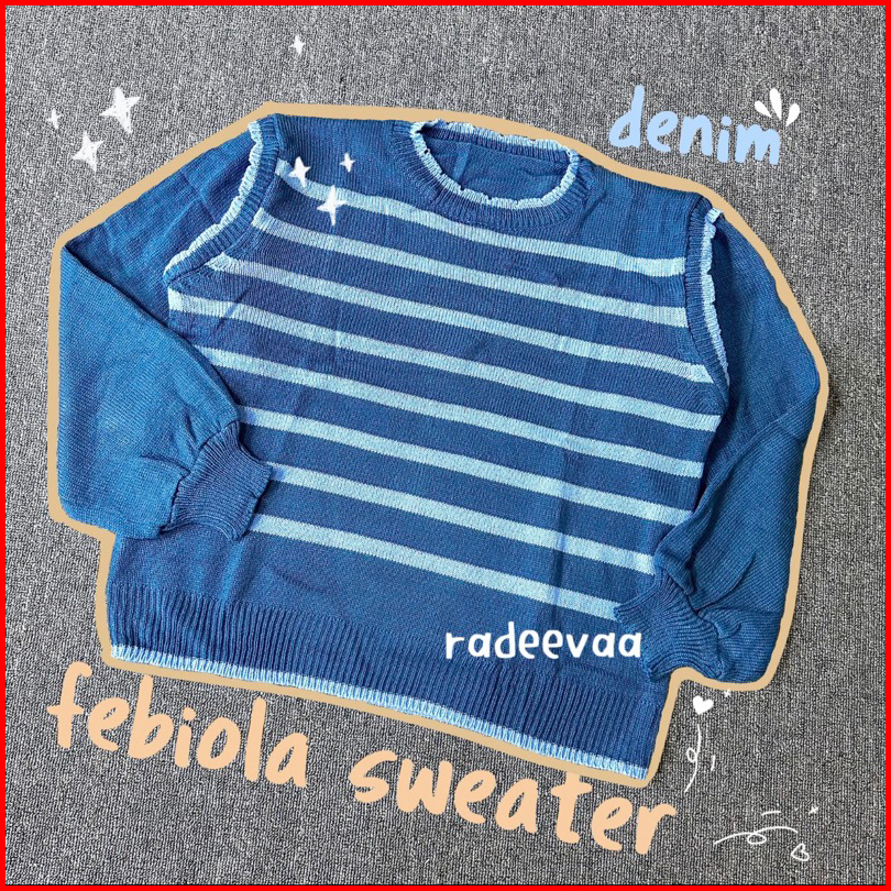 Febiola Sweater Stripe Curly Ruffle Korean Knit Atasan Crewneck Rajut Motif Garis