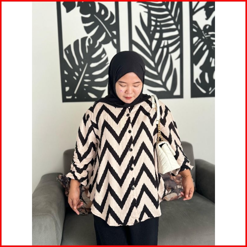Eliza Blouse Oversize Lengan Balon Katun Rayon Motif Terbaru