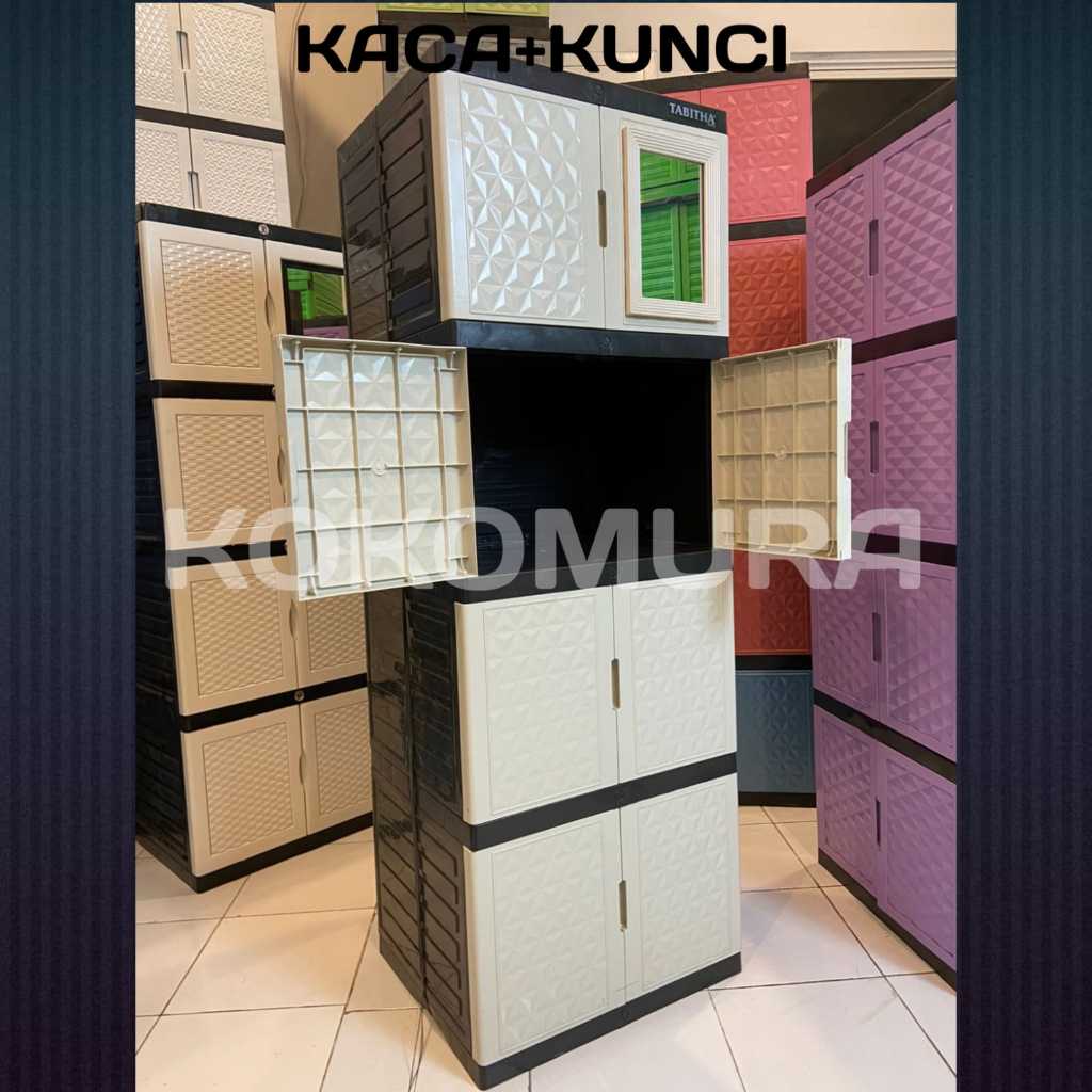 Lemari Plastik Putih Anti Rayap Dengan Kaca Dan Kunci