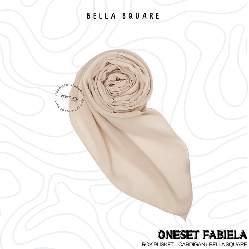 Fabiela Outfit Set Wanita Hijab ( Rok Plisket Panjang + Atasan Cardigan + Bella Square ) One Set Korean Style | Setelan