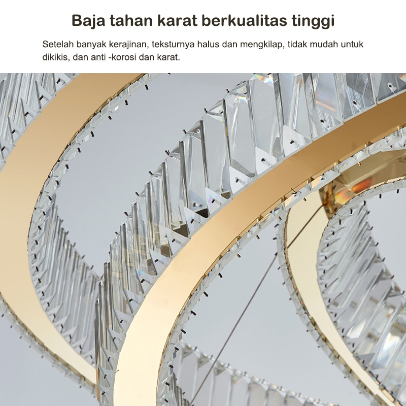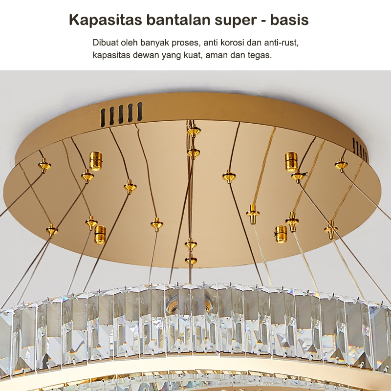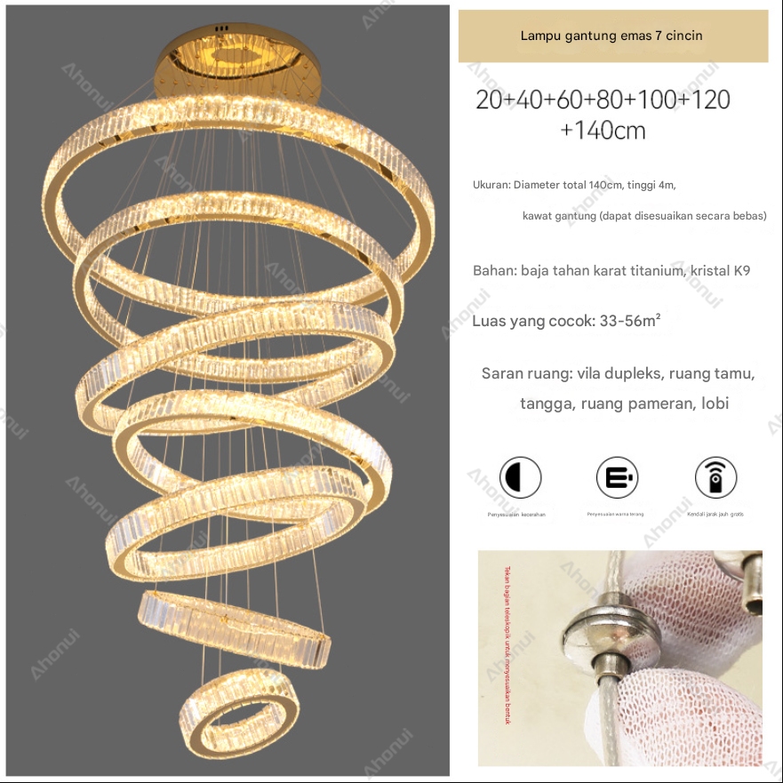 Garansi Lampu Kristal Mewah Dupleks Lantai FREE Remote Lampu Gantung Besar 5 Cincin 3.5M Hall Berongga Lompat Tinggi Lan