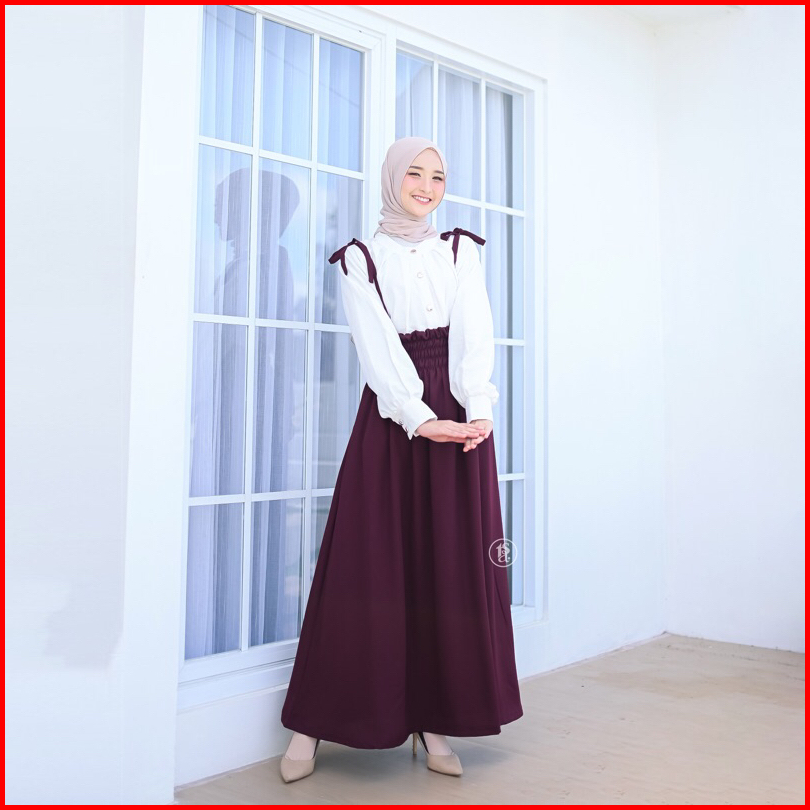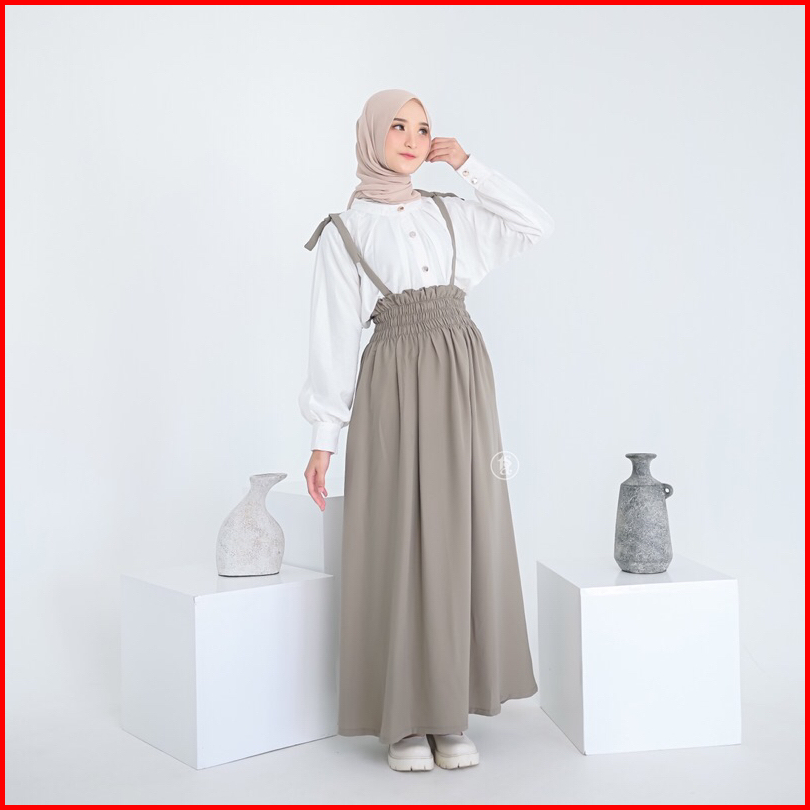 Tsabine - Asha Overall Rok Wanita Long Skirt Model Highwaist Karet Pinggang Premium Overall Only