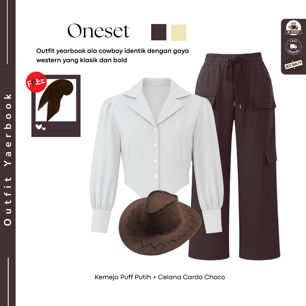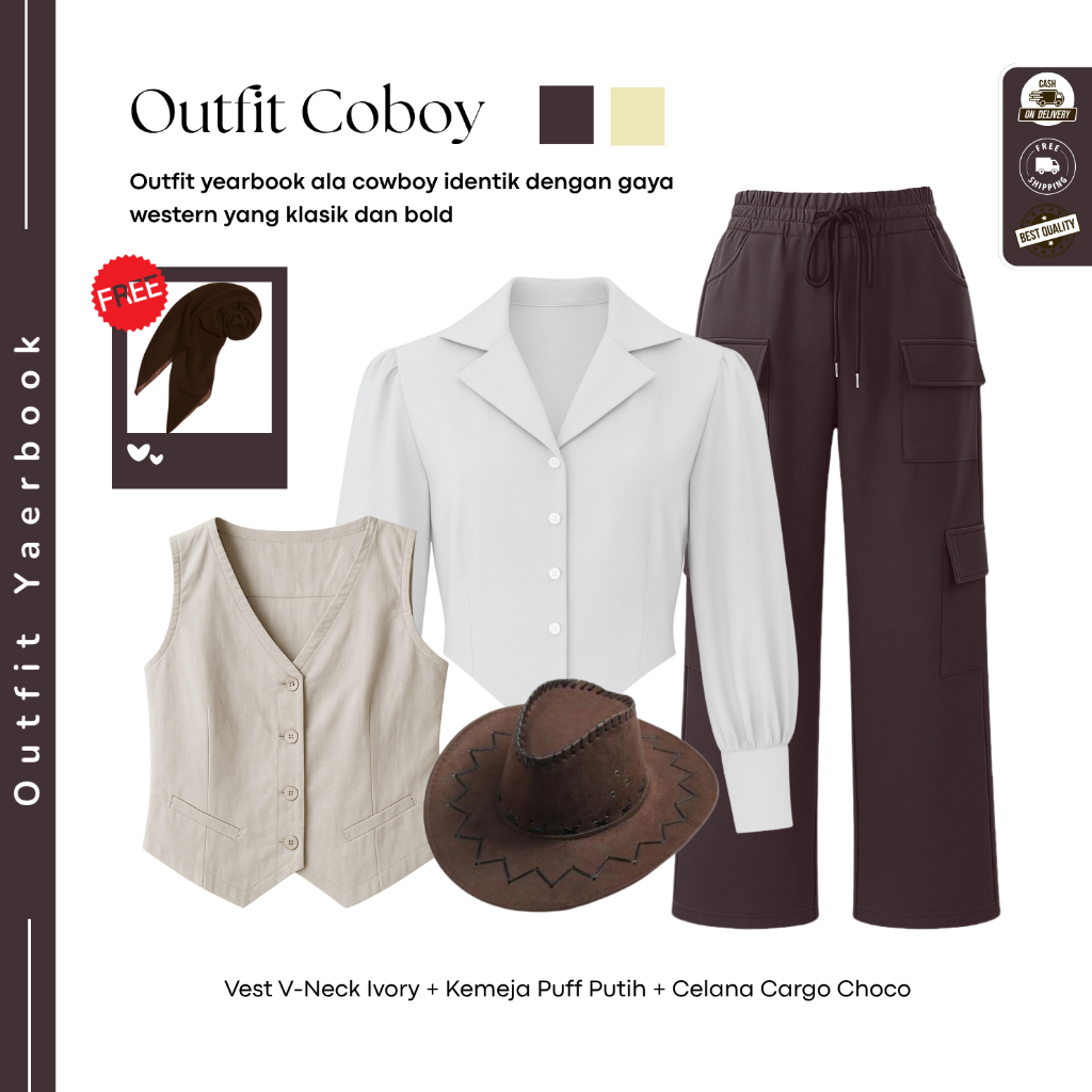 One Set Outfit Yearbook Coboy (Vest + Blouse + Celana Cargo ) Outfit Yearbook Kekinian - Fo05