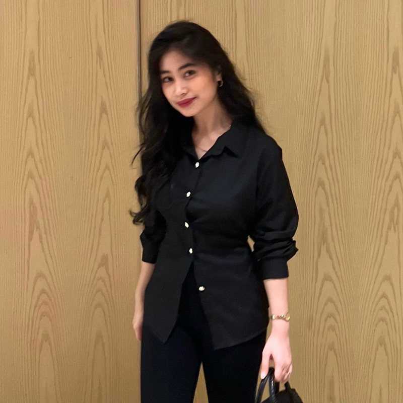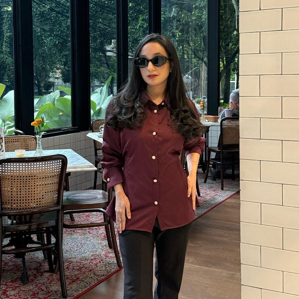 Sispo | Valora Top | Kemeja Atasan Wanita Brown Fitted Shirt Coklat Mahogany Baju Kantor Casual Kerja Cewek Polos Putih