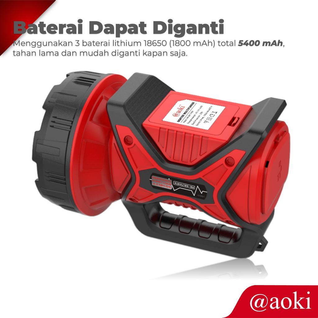 AOKI Senter Patrol AK-6671MAX | Baterai 18650 Bisa Diganti | Lampu LED Rechargeable 5400mAh | Indikator Daya | 5 Mode Ca