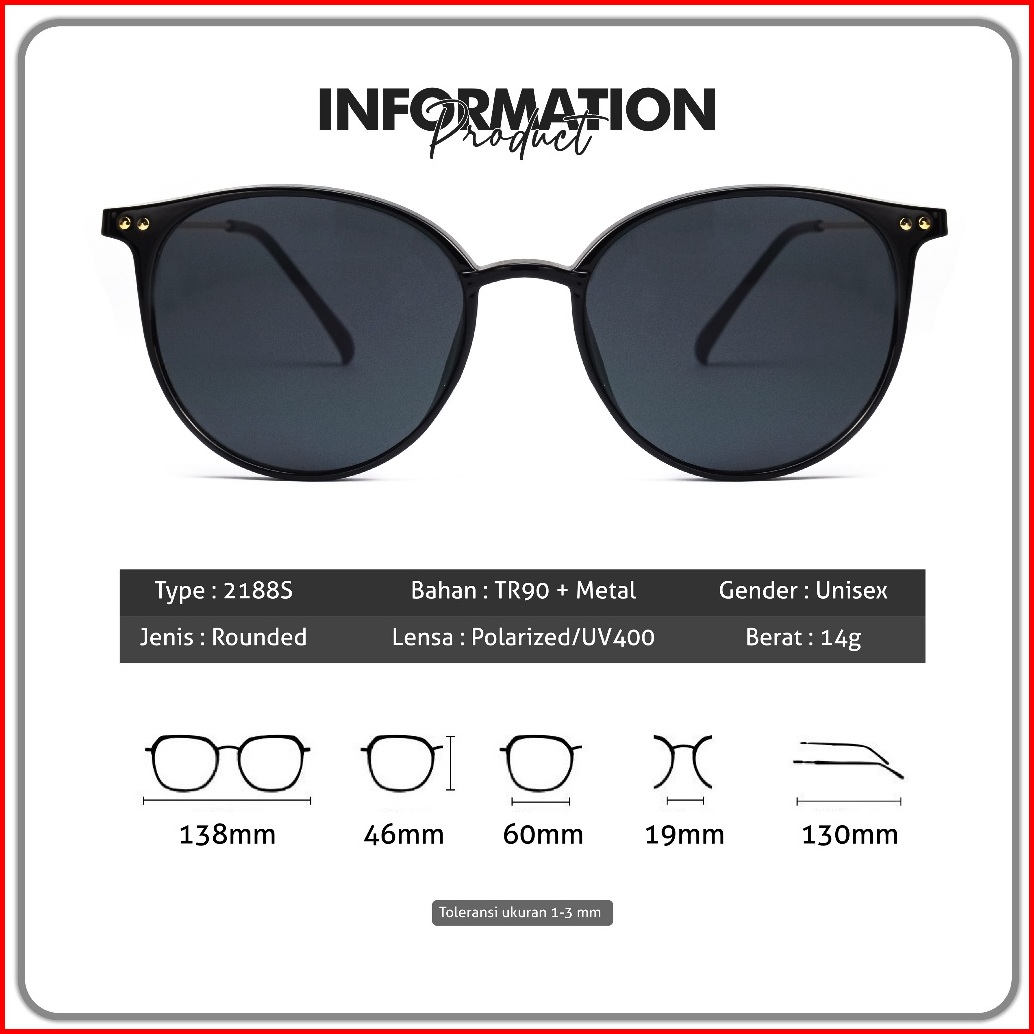 Genius Maiden Kacamata Hitam Sunglasses Polarized Bisa Minus Bahan Tr-90 Fashion Modern Korean Style Pria Wanita 2188s