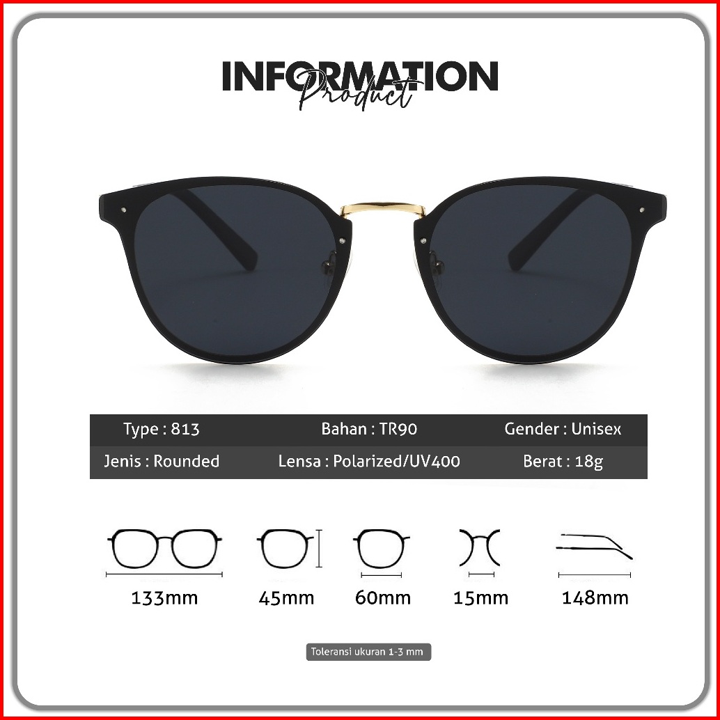Genius Maiden Kacamata Hitam Sunglasses Fashion Korea Style Pria Wanita Polarized Uv-400 Tr-90 Metal 813