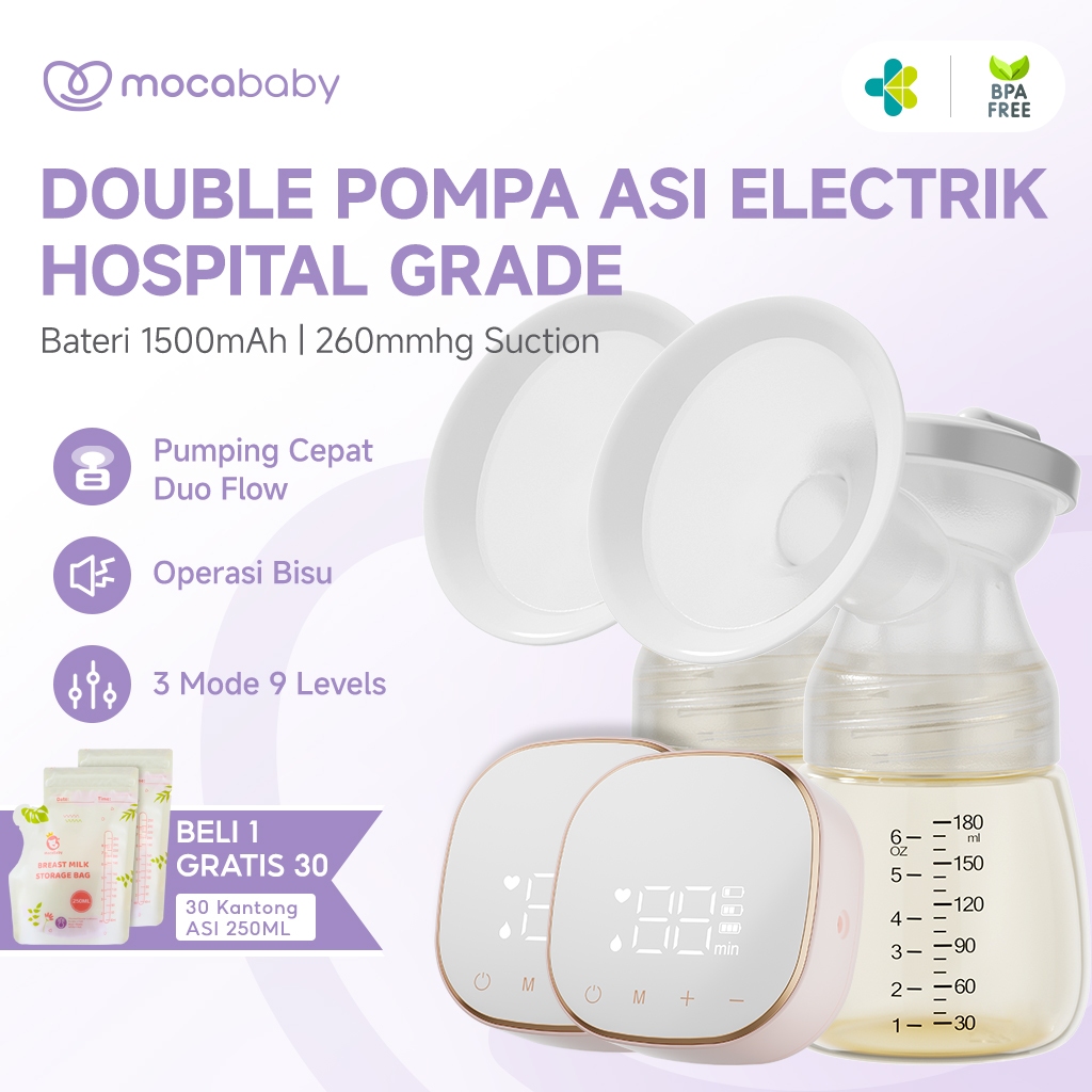 Mocababy Pompa ASI Elektrik Double 2in1 2200mAh Double Botol Breast Pump Dengan Dot ASI Bayi Baru Lahir Hisap Kuat BPA F