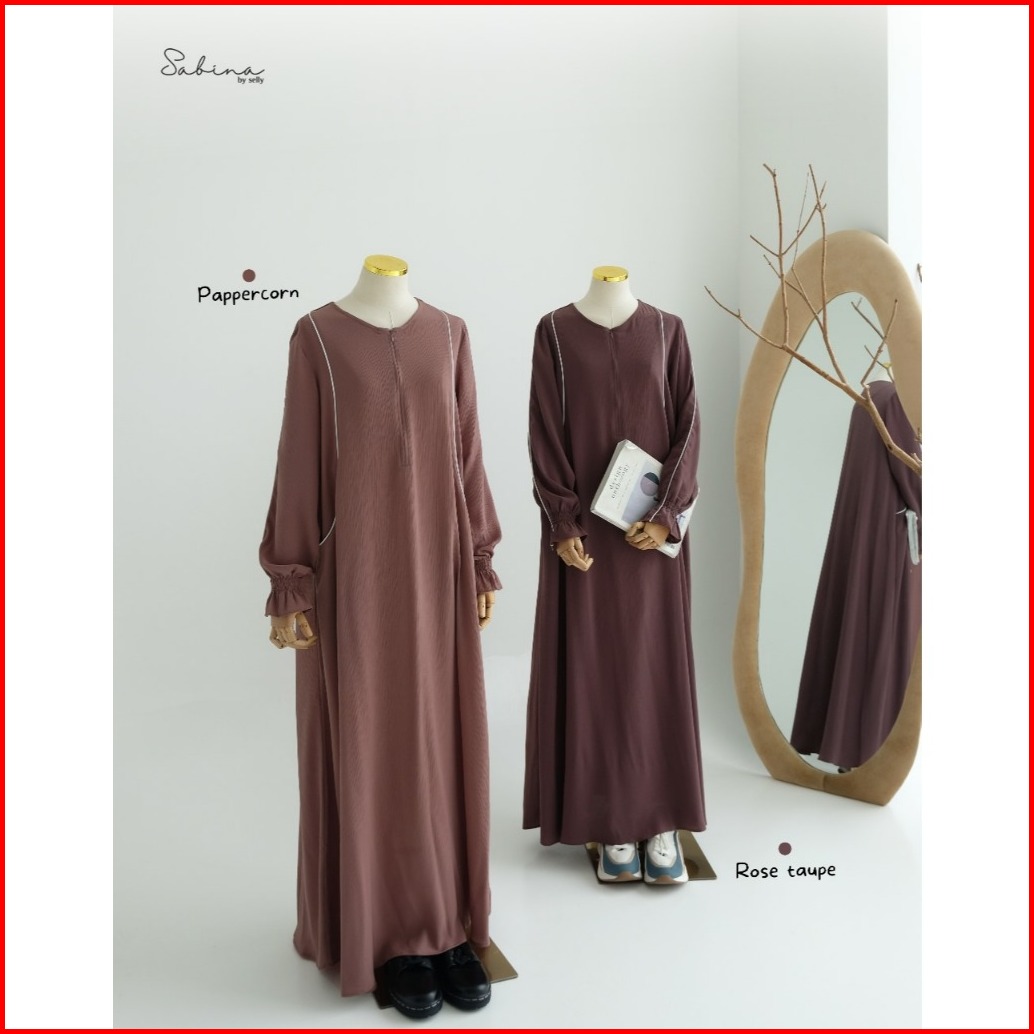 Albira Abaya Bahan Mallow Ready Stock- Dress Polos Simple Dengan List Warna Putih Bw Sporty Cassual