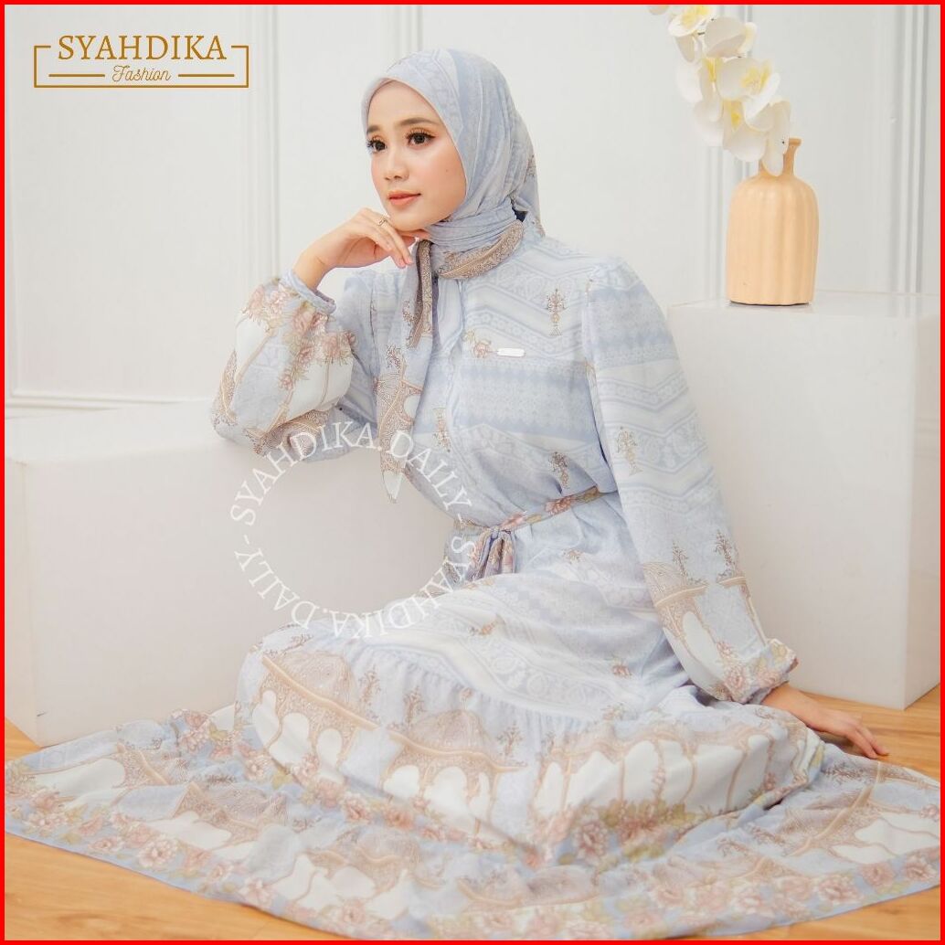 Free Hijab Nayla Flower Dress Gamis Wanita Kekinian Ceruty Baby Doll Premium