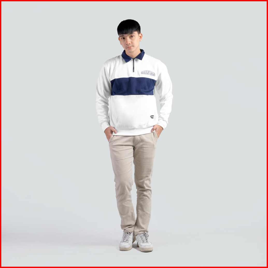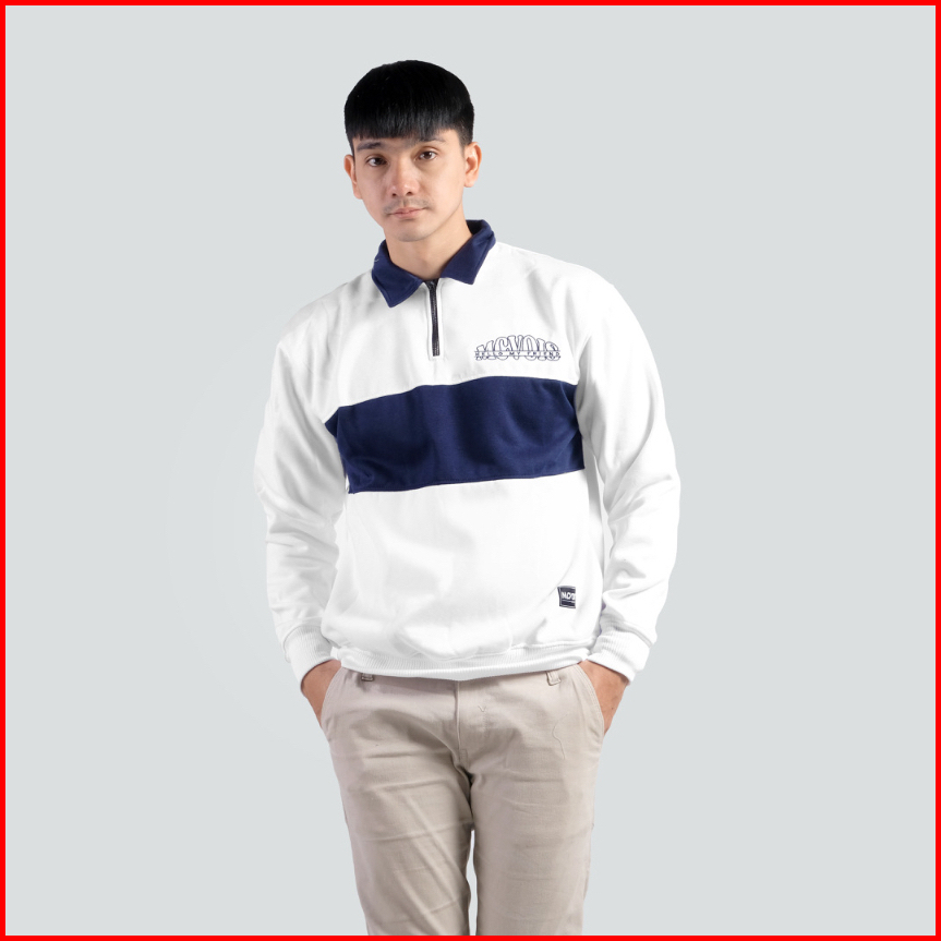 Mcvois Jaket Rugby Halfzip Putih Pria Wanita
