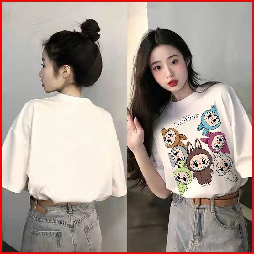Forteid T-shirt Lengan Pendek Baju Kaos Oversize Wanita Baju Kaus Wanita Korea Baju Atasan Wanita Terbaru Pola Labubu Ya