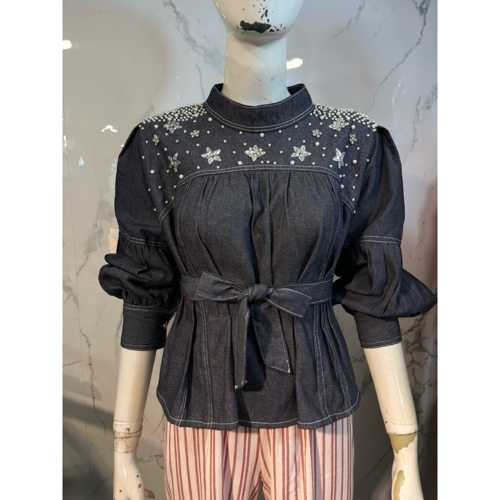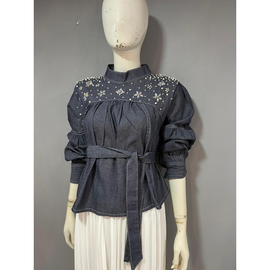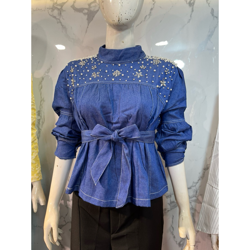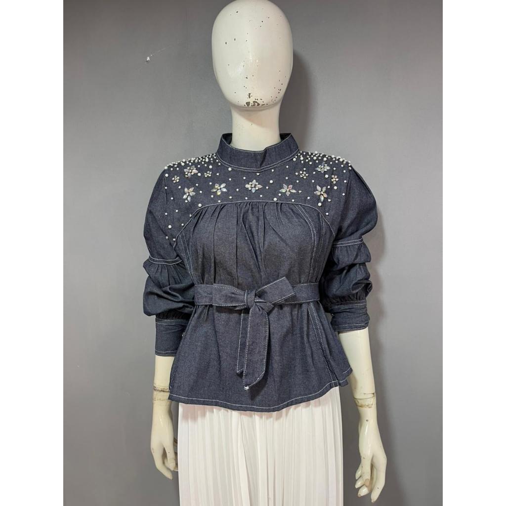 Blouse Denim Atasan Wanita Blouse Payet Kemeja Wanita