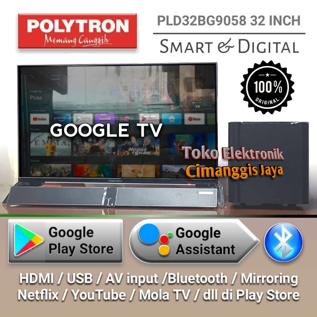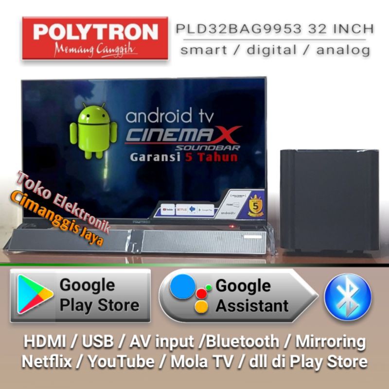 [Star] Google android smart digital tv led Polytron cinemax soundbar 32 inch PLD32BG9058 PLD32BAG9858