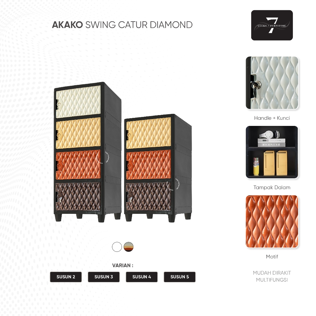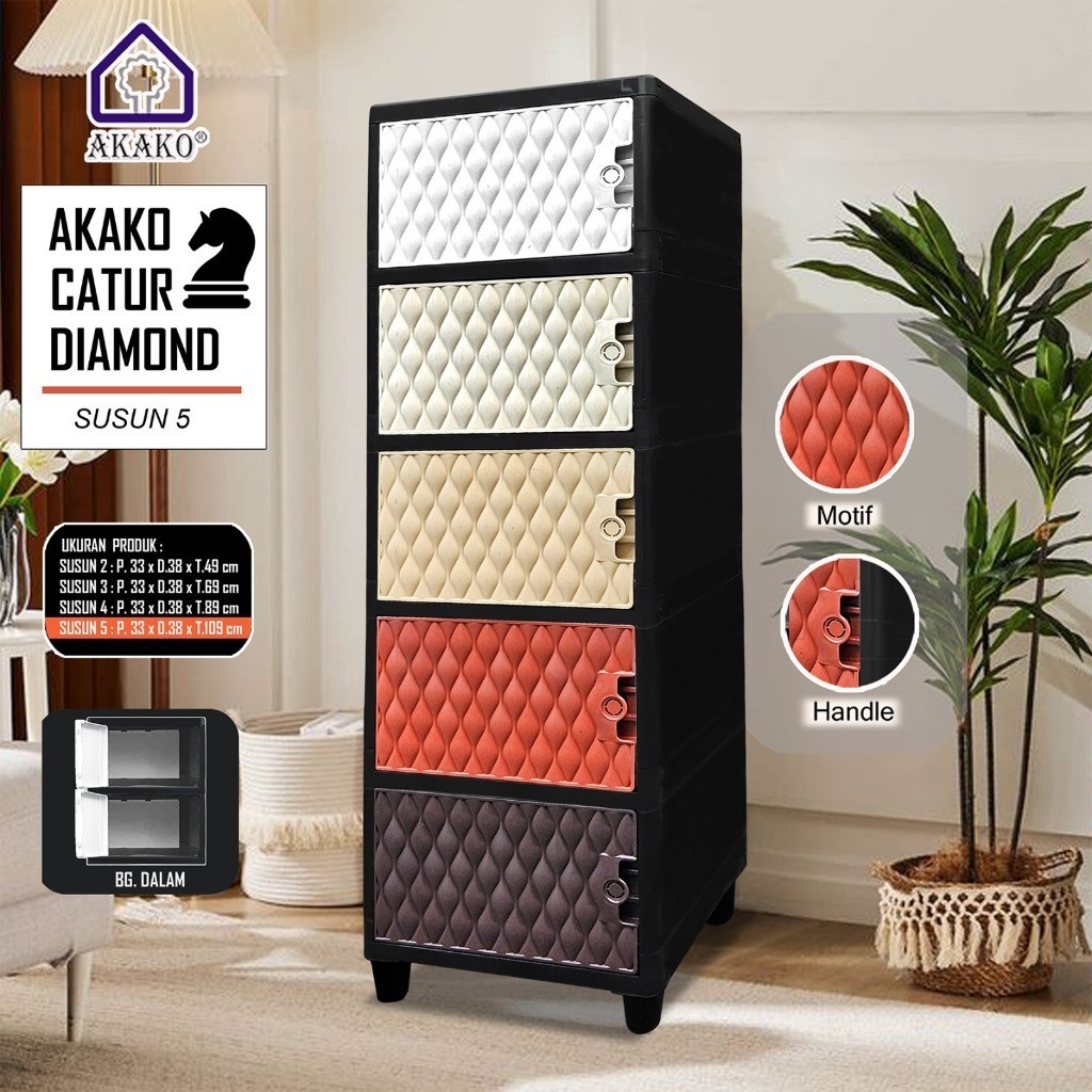 AKAKO - FULL GARANSI Lemari Pakaian Plastik SWING CATUR DIAM0ND LACI Susun 2, 3, 4, dan 5 MURAH BAGUS Serbaguna