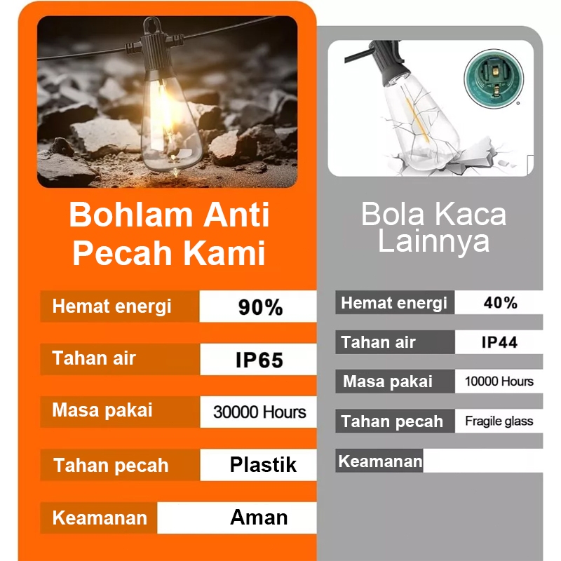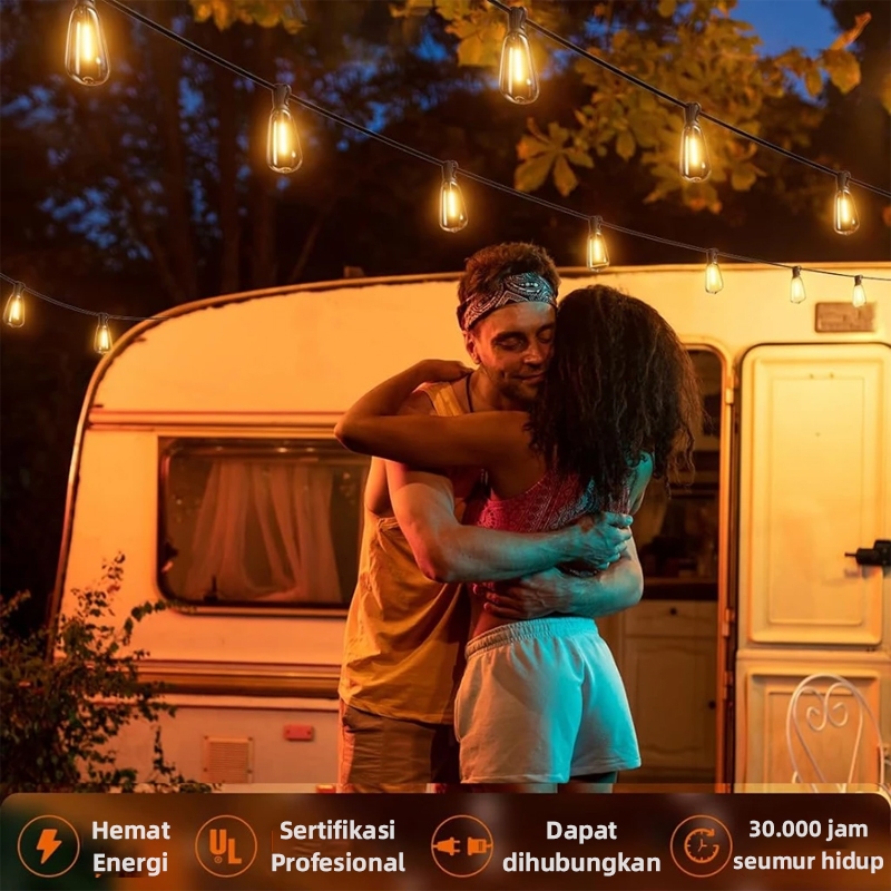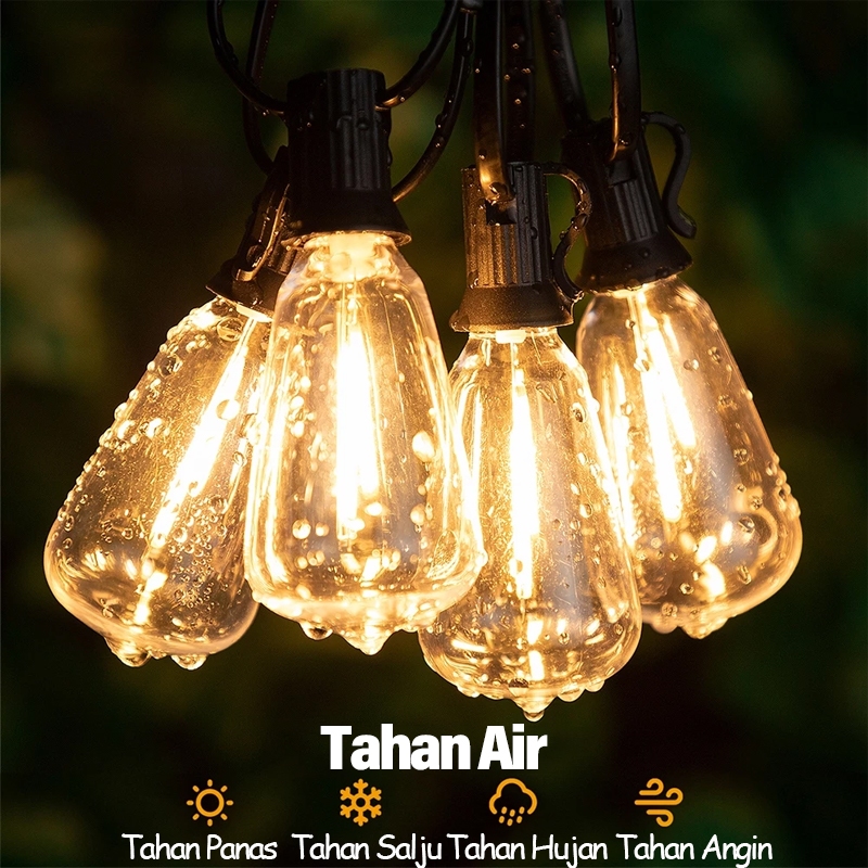 QIMEDO 25 Lampu Led 15 Meter Kabel Fitting Tahan Air Kafe Bola Komplit Lampu Gantung Outdoor