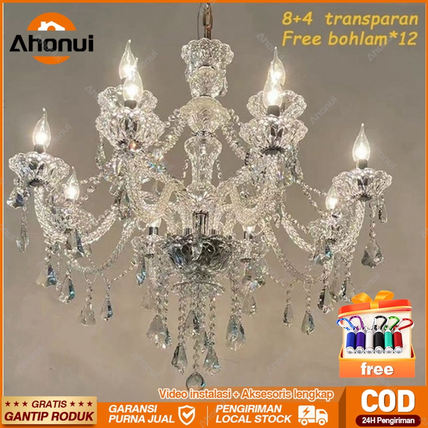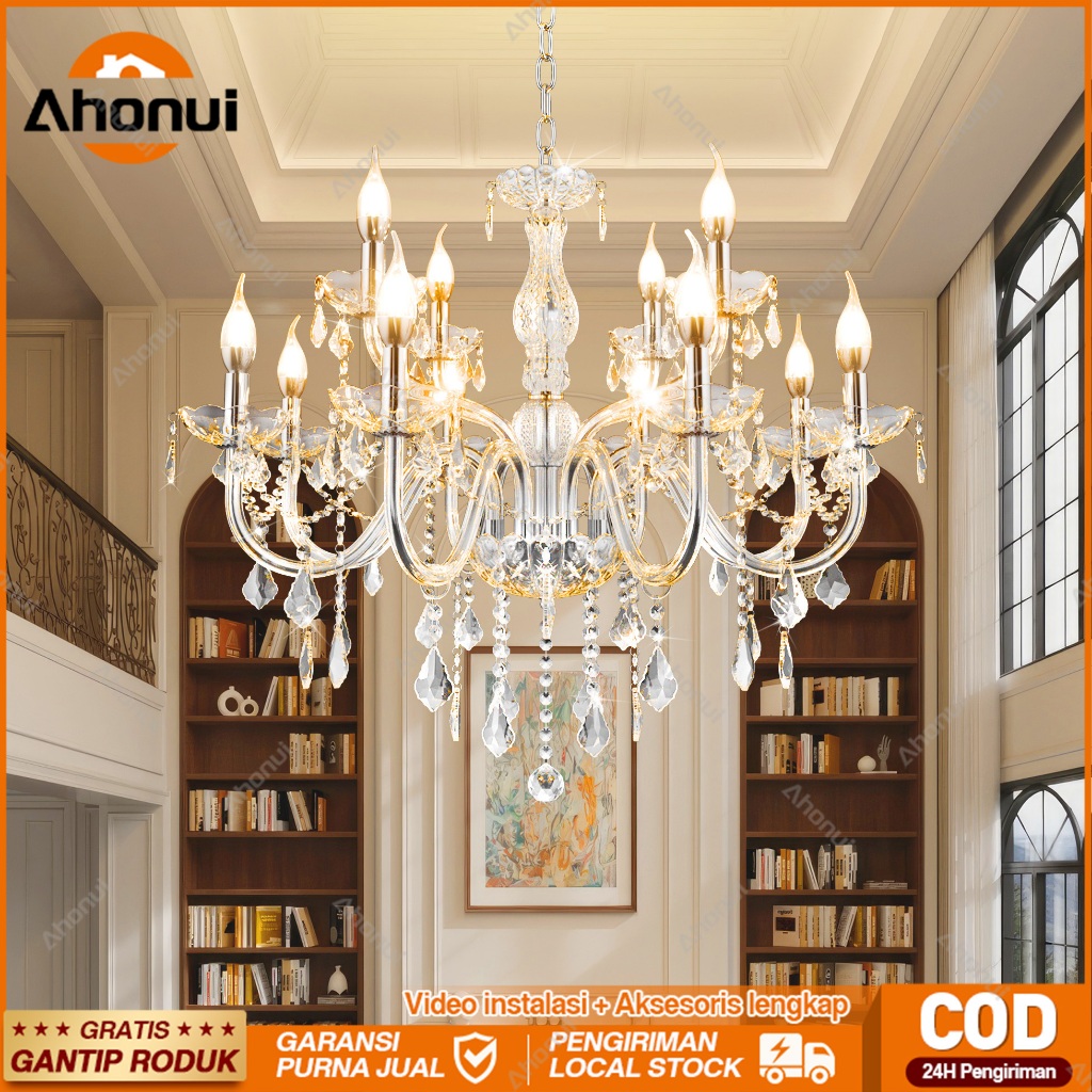 100%Kristal&Free Bohlam Lampu Hias Gantung Kristal Estetik Besar Mewah 75/85/95 CM ern Luxury Dekorasi Eropa Ringan Gaya