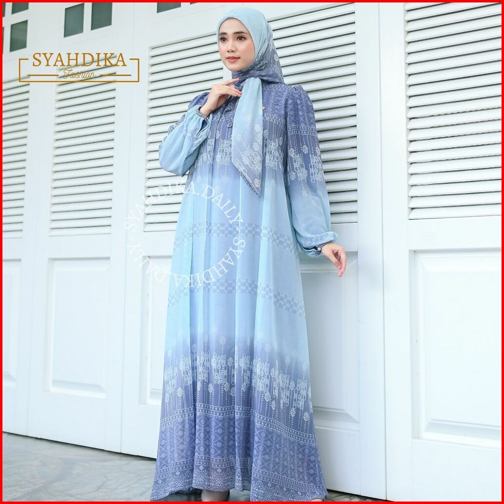 Gamis Jumbo Terbaru Ceruty Babydoll Full Furing Resleting Depan Dress Set Hijab Jumbo Size Ld 130 Premium Syahnaz By Sya