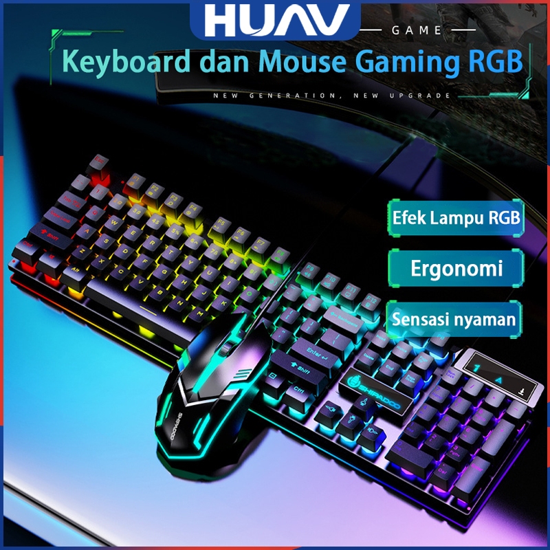 HUAV Kombo Keyboard dan Mouse Gaming dengan Lampu RGB Cahaya / Termasuk Mouse dan Keyboard - Keyboard Mekanikal untuk PC