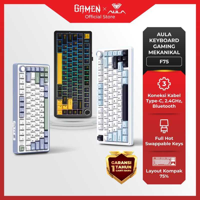 AULA Keyboard Gaming Mechanical Wireless Linear Switch Gasket F75 RGB Original - Garansi 1 Tahun