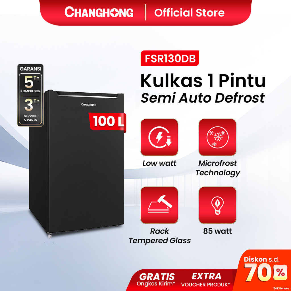 Kulkas Changhong 1 Pintu 100L FSR130DB - Hitam Semi Auto Defrost