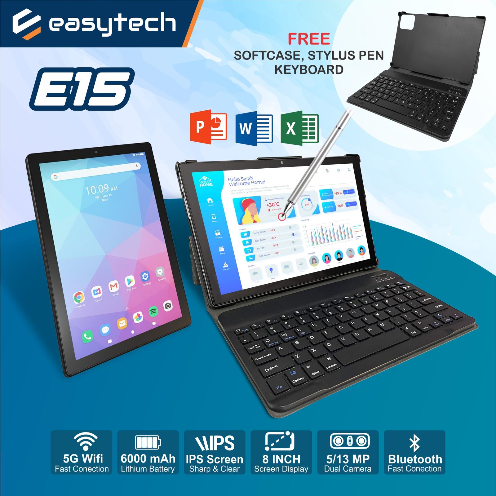 Tablet Android Easytech E15 Tablet PC Android Layar Sentuh IPS Screen Tab 10 Inchi Bluetooth Wifi Gray