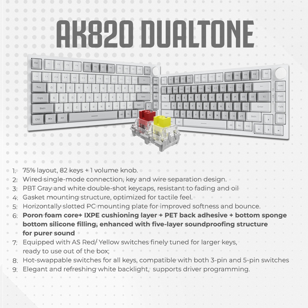 Ajazz AK820 Dual Tone 75% Mechanical Keyboard Wired White Backlight