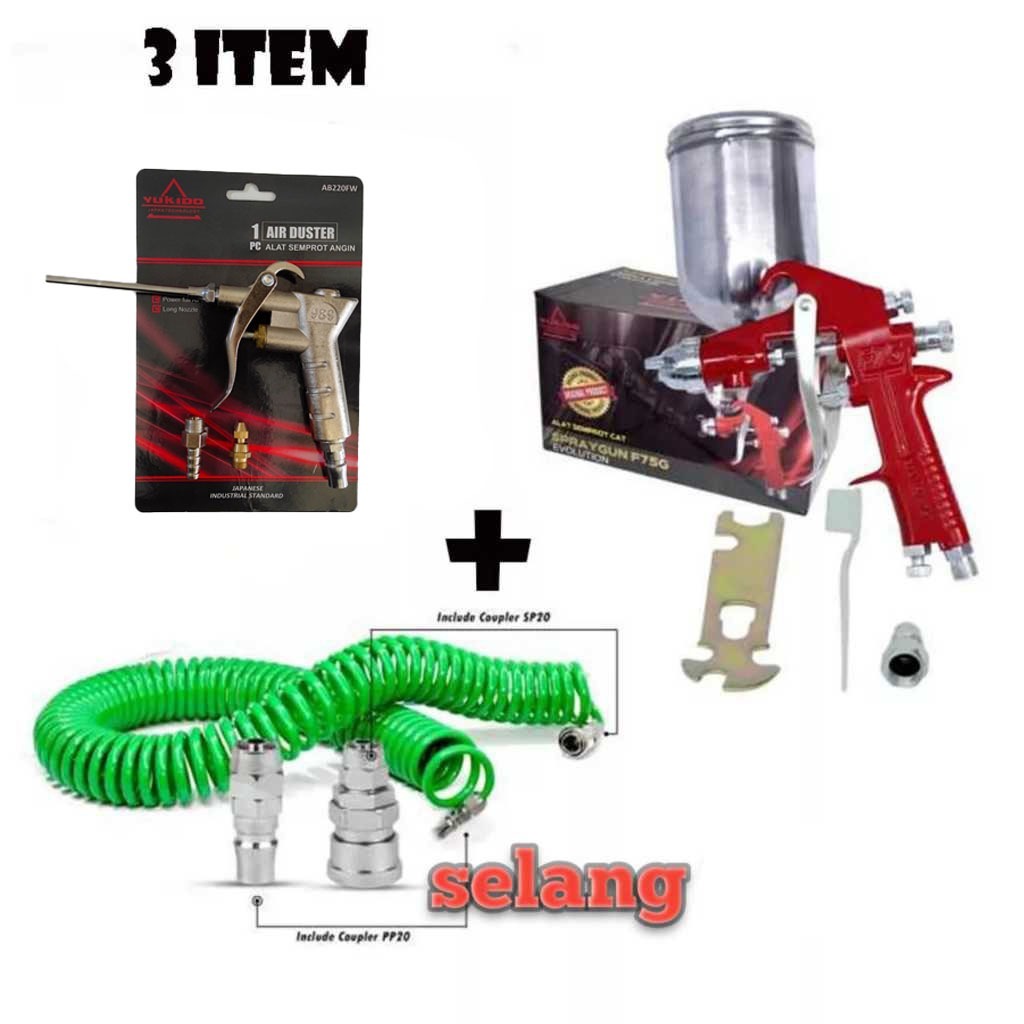 PAKET Spray Gun - Alat Semprot Cat spet Spray Gun F75G Semprotan Cat Kompresor Angin tabung atas+sir duster+AIR FILTER+a