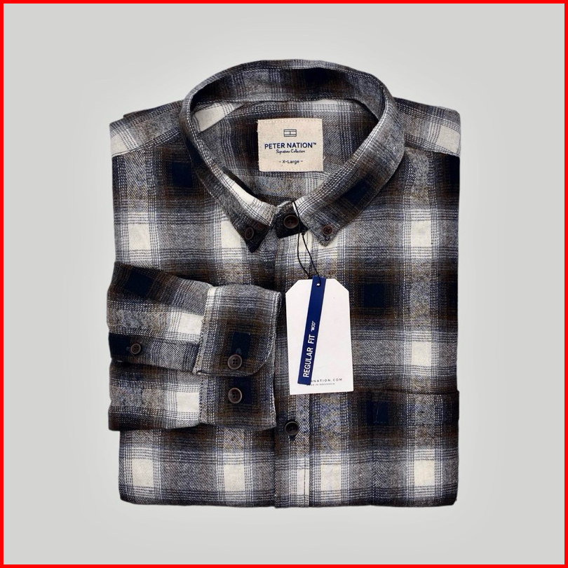 Peternation Kemeja Flanel Pria Wool Basic Panjang Regular Fit
