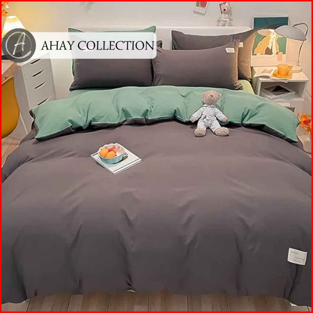 Bedcover Set Two Tone Bedcover Dua Warna Motif Abu Polos Mix Hijau Wardah Polos Aesthetic Uk Single 120x200 Queen 160x20