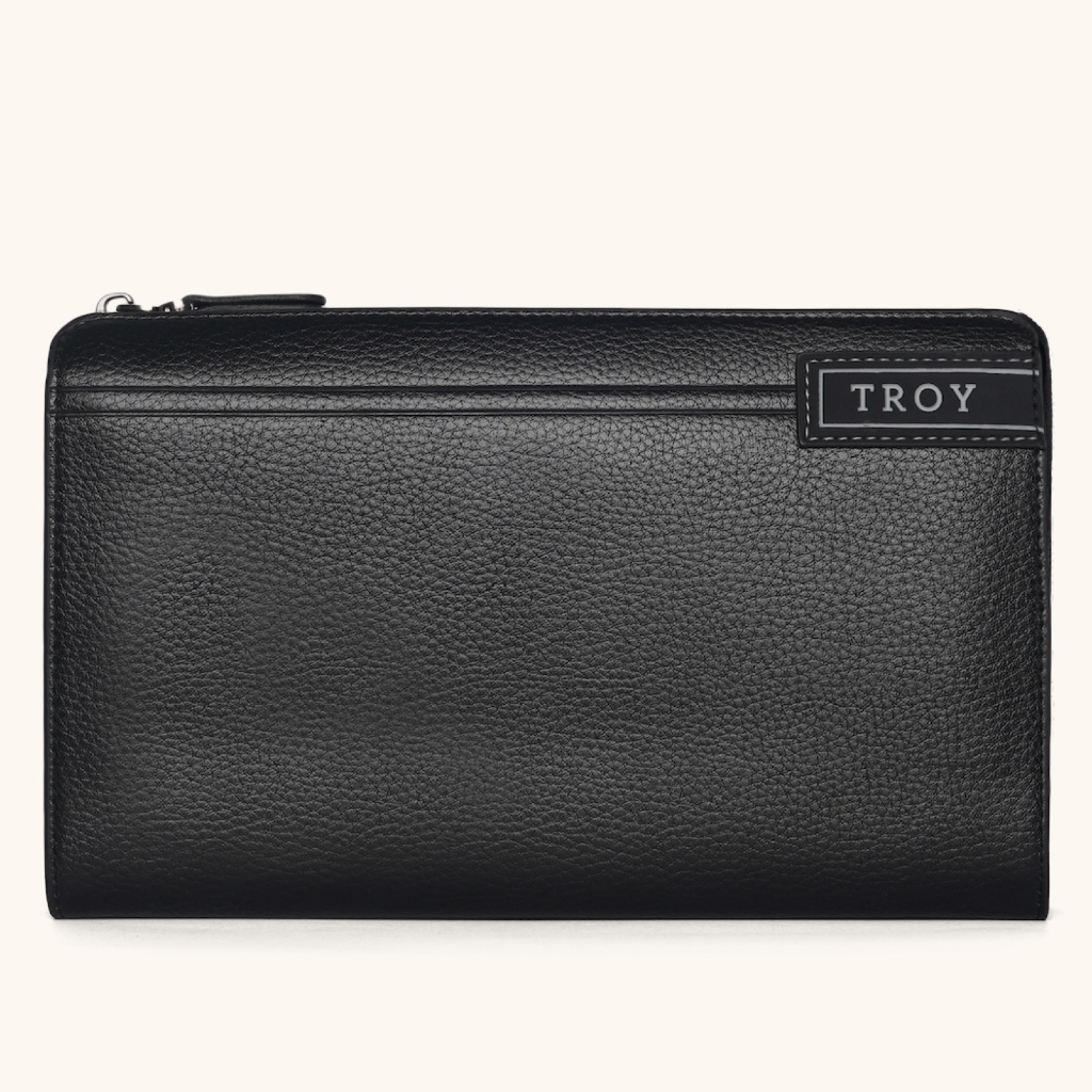 Troy Clutch Handbag Pria Bahan Kulit Pu Original Mewah Modern Acara Formal Resleting Besar Roman