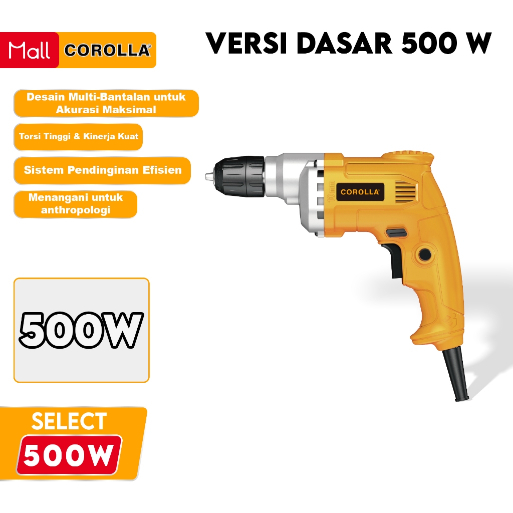 Corolla Mesin Bor Listrik 500W 10 MM / Electric Drill Bor Beton Kayu Besi Tembok Bor Listrik 500 Watt