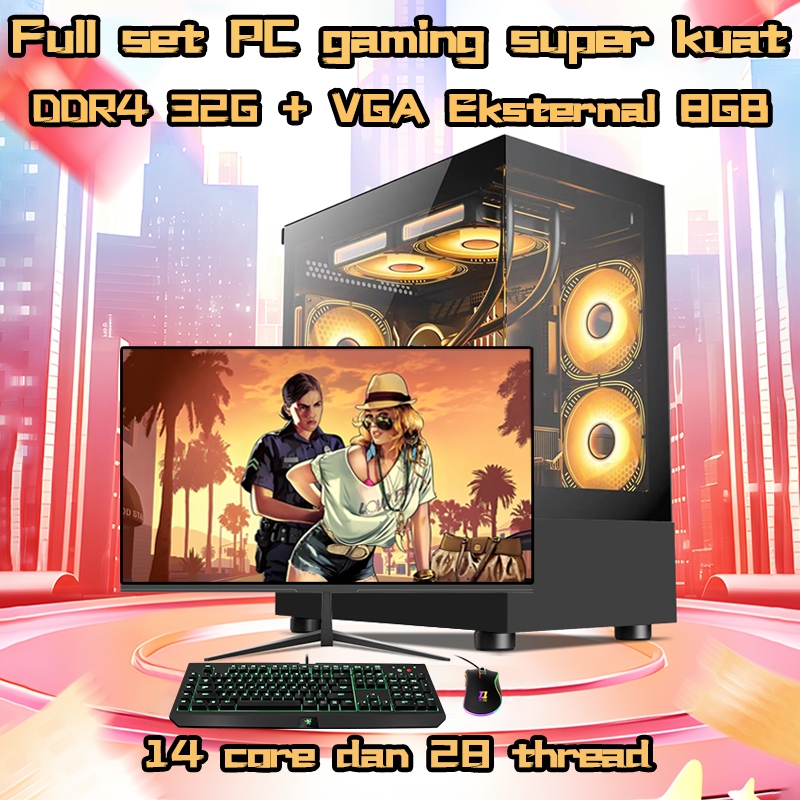 Paket Lengkap PC Gaming Full Set + Monitor — Siap Main GTA V/PUBG/Genshin Impact/Valorant/Call of Duty/Dota 2 & Cocok untuk Desain Kantor