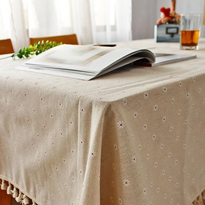 Taplak Meja Persegi Katun Linen varian 20 Kain kedap air Modern - Cream Flower 140*180