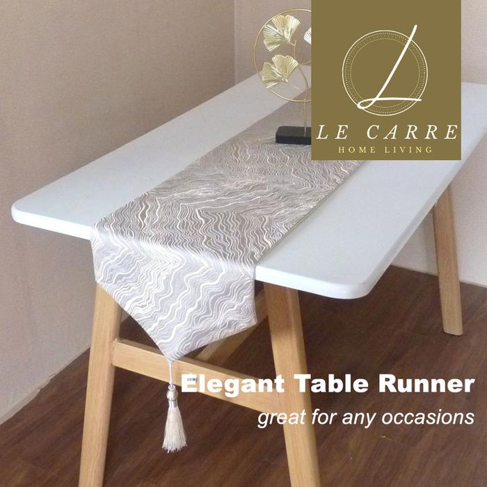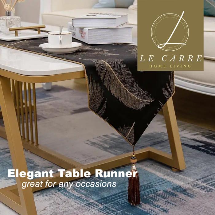 Elegant Nordic Table Runner Bordir / Taplak Meja Tamu Premium Timbul - Blue leaf Large