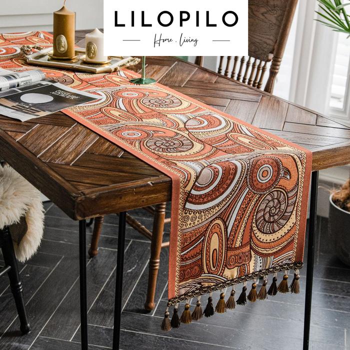 LILOPILO Table Runner Tropical / Taplak Meja Makan Tamu Mewah Premium Hadiah - Conch Abstract M (35x180)