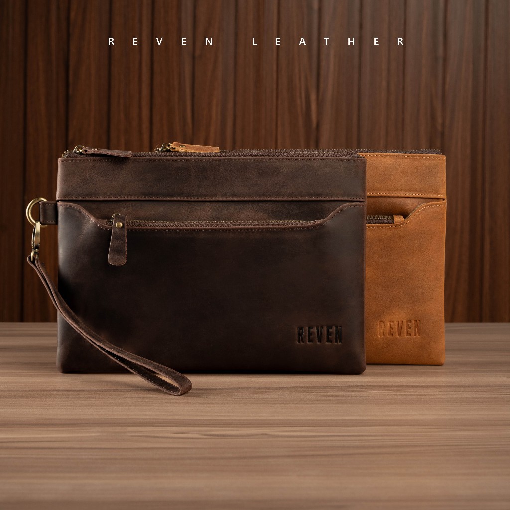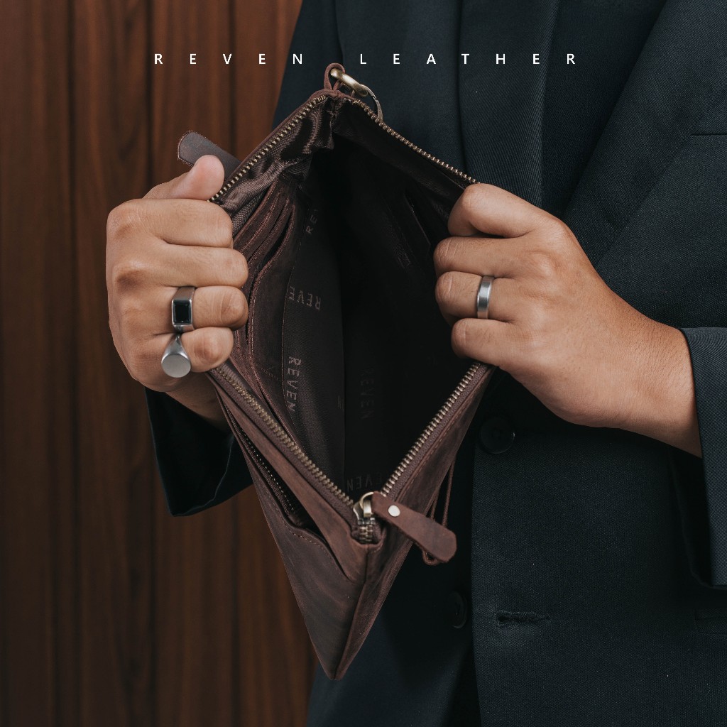 Reven Leather Darius Handbag - Tas Tangan Clutch Pria Kulit Sapi Asli Free Random Gift