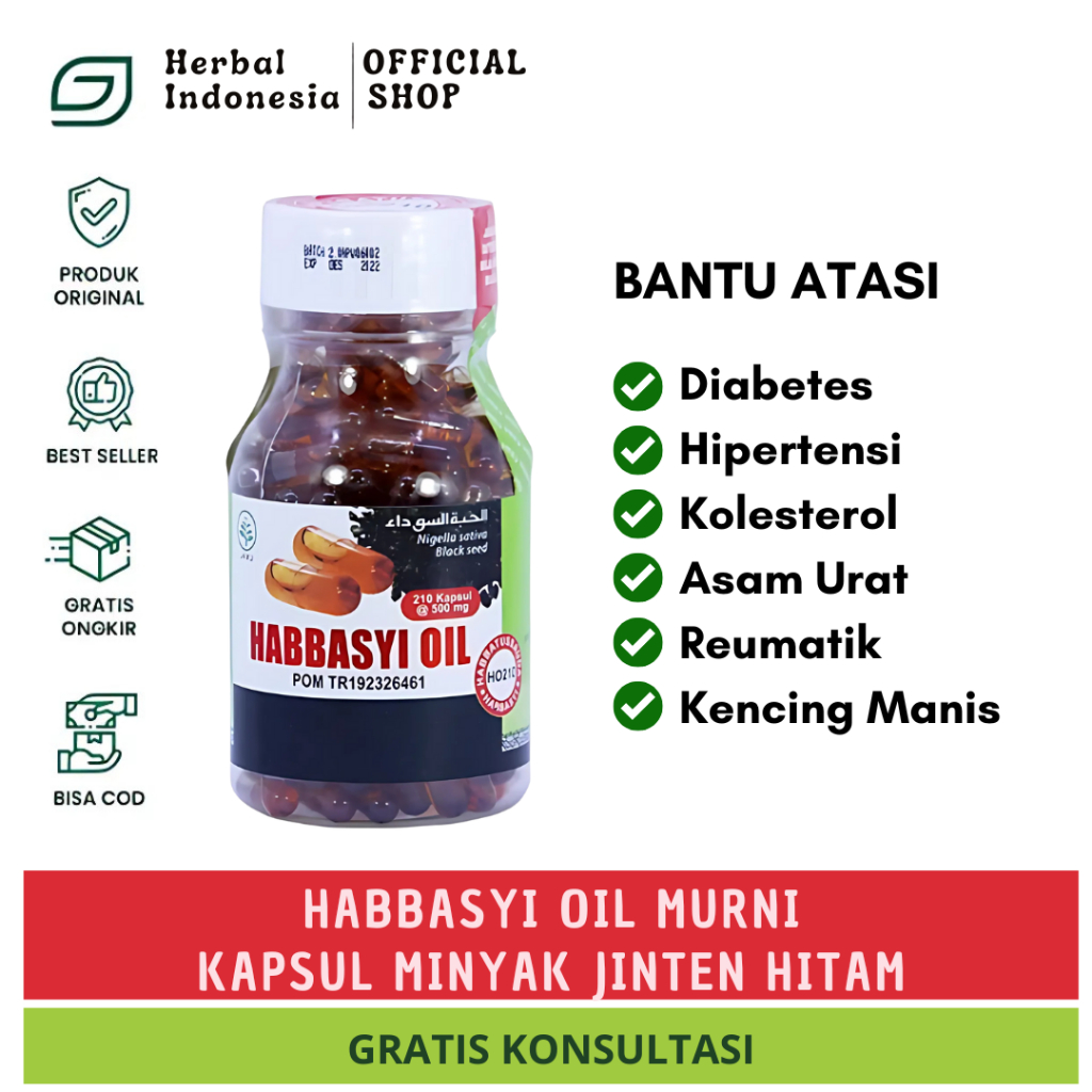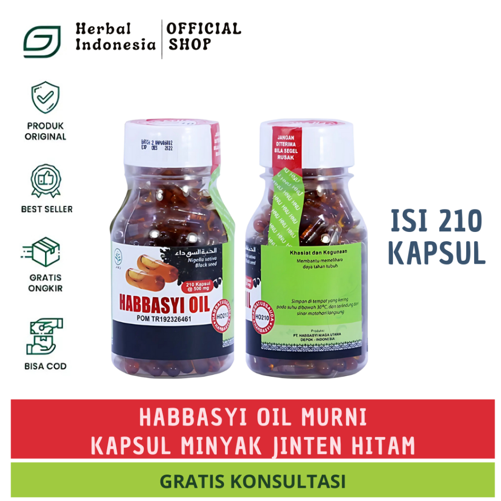 Habbasyi Oil Murni 210 Kapsul | Habbatussauda | Minyak Habbatusauda Isi 210 - Kapsul Minyak Jinten Hitam | Habbasy Niaga