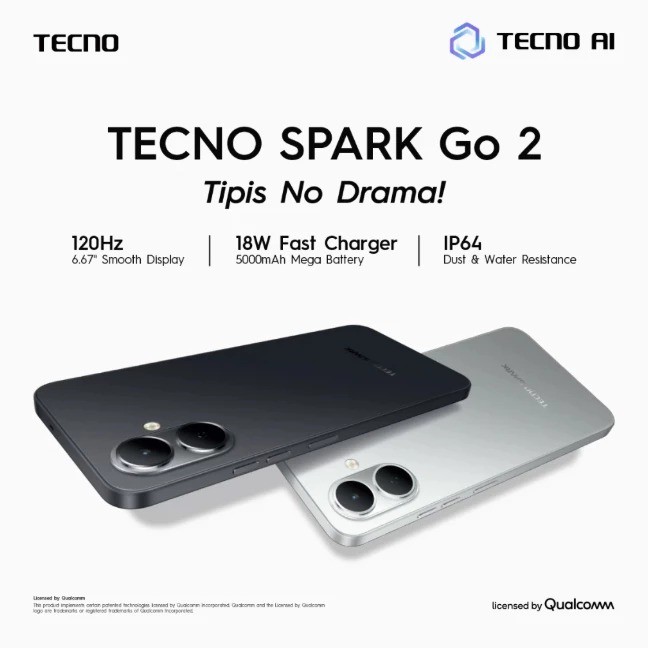 TECNO Spark Go 2 3+3/64GB | 4+4/64GB - 5,000mAh Charging speed 18W - Resmi