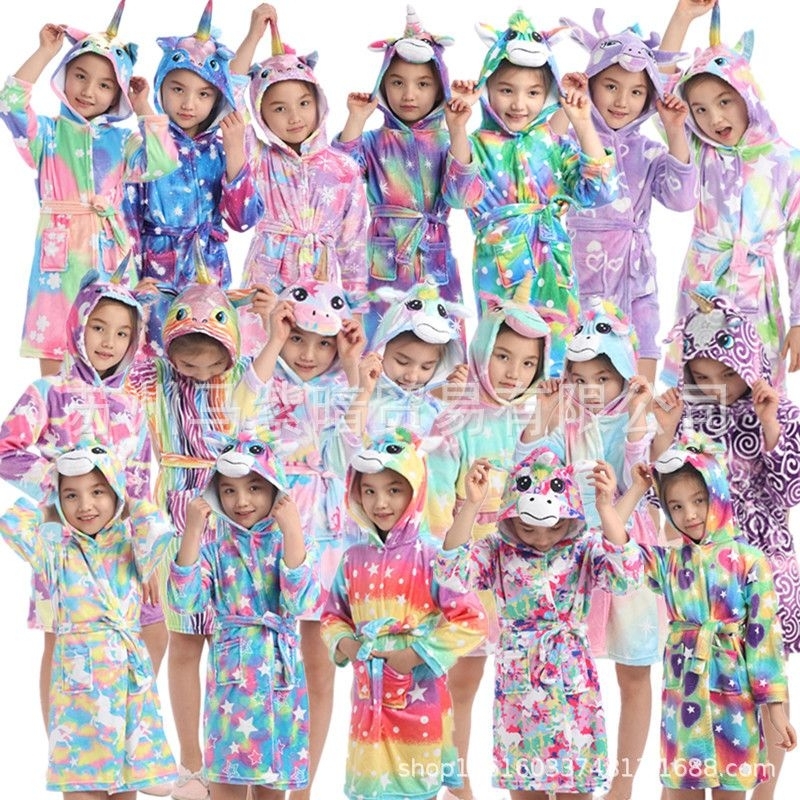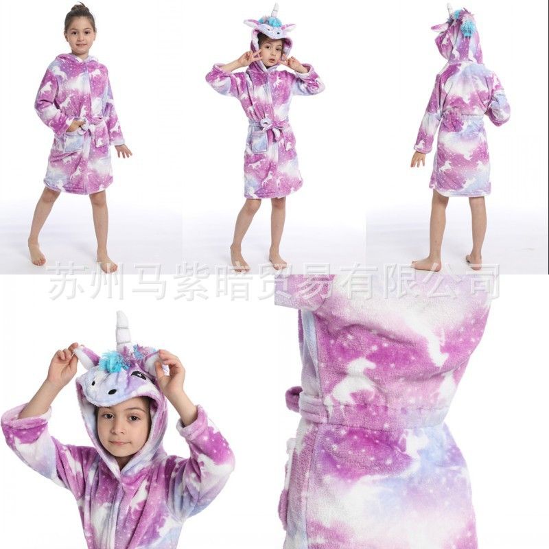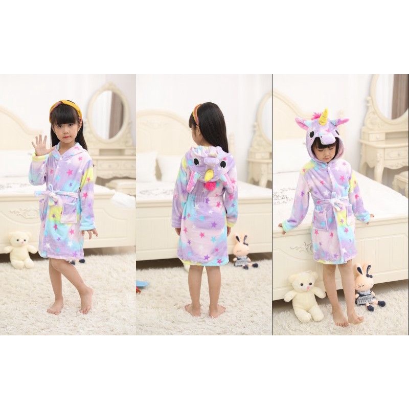 Baju kostum Piyama Pakaian Baju Kimono Mandi Renang Anak Perempuan Kepala Unicorn Bathrobe Jubah Mandi Anak Unicorn Kart