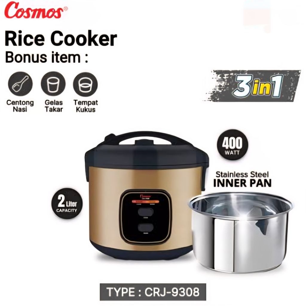 Rice Cooker / Magicom Cosmos 2 Liter Crj 9303 / 9308 Stainless Steel Garansi Resmi