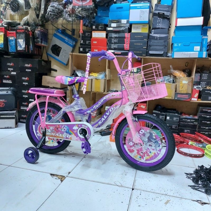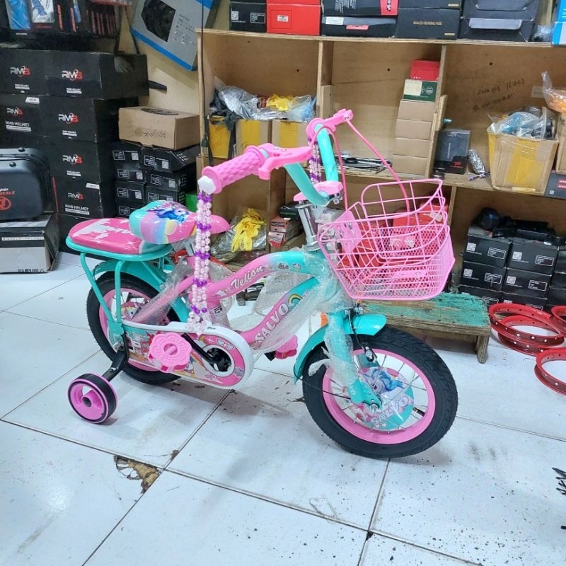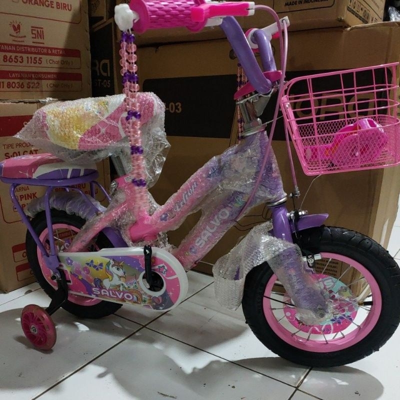 Sepeda anak mini salvo csv kuda pony ukuran 12" 16" 18" keranjang besi