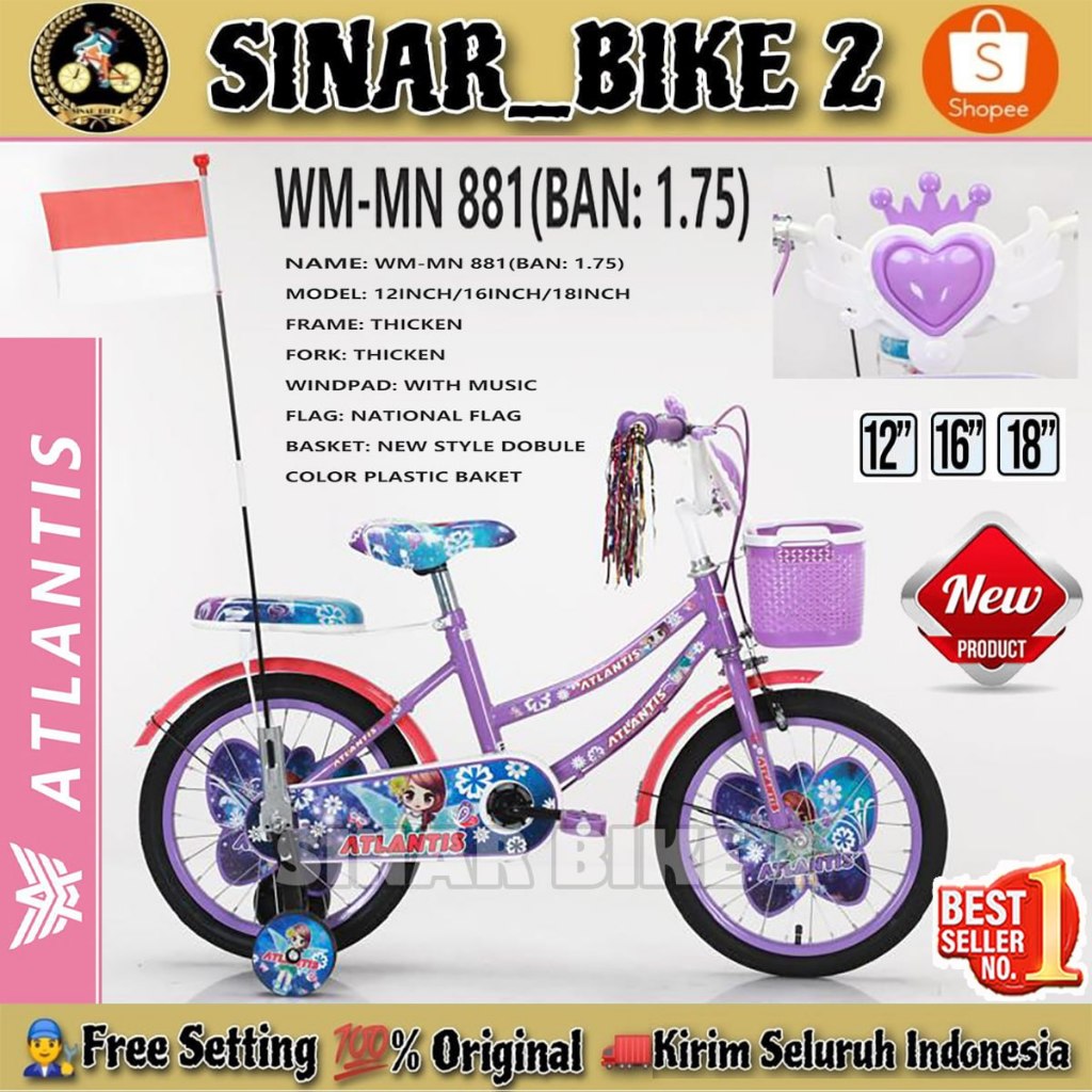 Sepeda Anak Perempuan ATLANTIS MN 881 TAMENG MUSIK + BENDERA // CENTRUM 308- 8 TAMENG MUSIK // CENTRUM 311 Ukuran 12 16